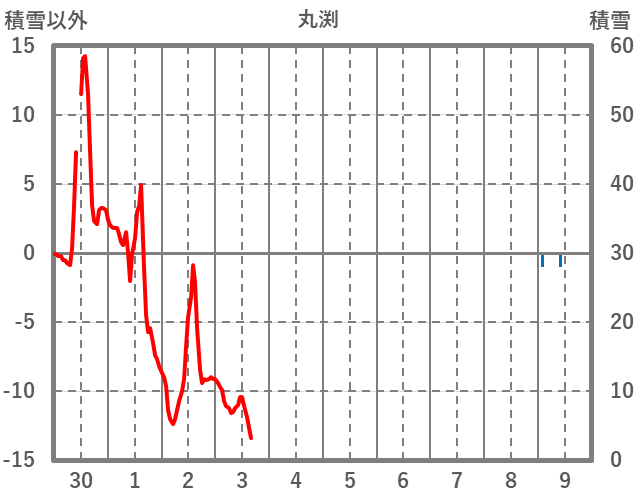 | 日 | 時 | 気温 | 降水 | 風向/風速 | 日照 | 積雪 | 降雪 |
