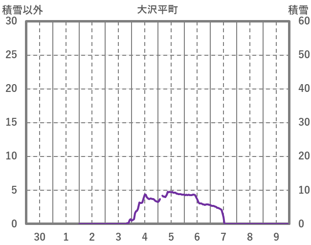 | 日 | 時 | 気温 | 降水 | 風向/風速 | 日照 | 積雪 | 降雪 |