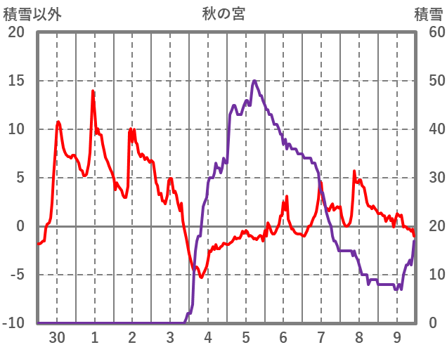 | 日 | 時 | 気温 | 降水 | 風向/風速 | 日照 | 積雪 | 降雪 |