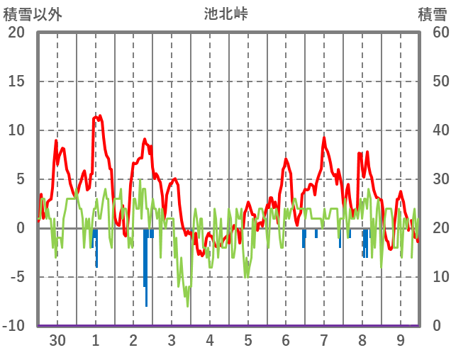| 日 | 時 | 気温 | 降水 | 風向/風速 | 日照 | 積雪 | 降雪 |