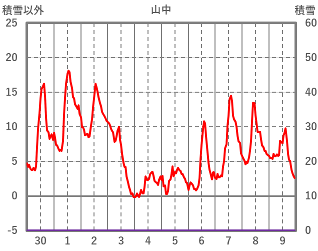 | 日 | 時 | 気温 | 降水 | 風向/風速 | 日照 | 積雪 | 降雪 |