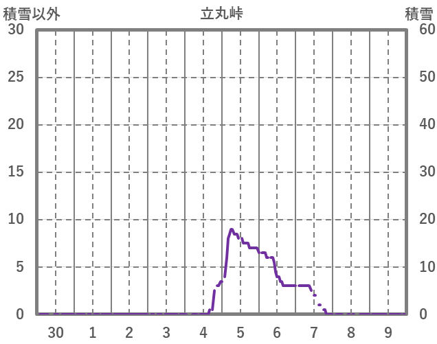 | 日 | 時 | 気温 | 降水 | 風向/風速 | 日照 | 積雪 | 降雪 |