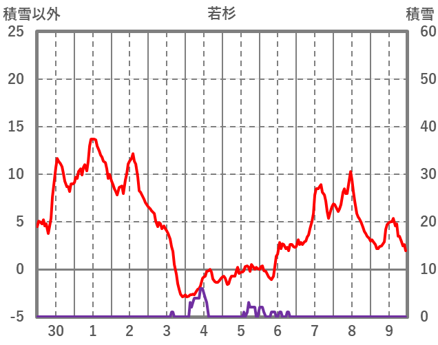 | 日 | 時 | 気温 | 降水 | 風向/風速 | 日照 | 積雪 | 降雪 |