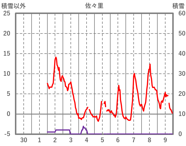 | 日 | 時 | 気温 | 降水 | 風向/風速 | 日照 | 積雪 | 降雪 |