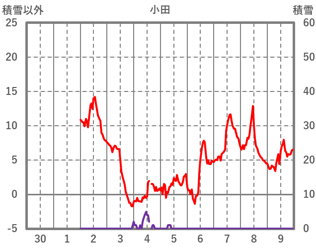 | 日 | 時 | 気温 | 降水 | 風向/風速 | 日照 | 積雪 | 降雪 |