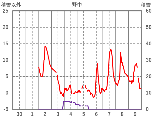 | 日 | 時 | 気温 | 降水 | 風向/風速 | 日照 | 積雪 | 降雪 |