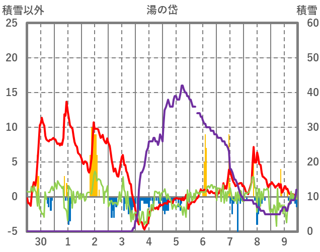 | 日 | 時 | 気温 | 降水 | 風向/風速 | 日照 | 積雪 | 降雪 |