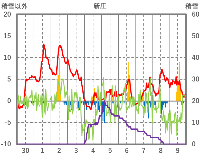 | 日 | 時 | 気温 | 降水 | 風向/風速 | 日照 | 積雪 | 降雪 |