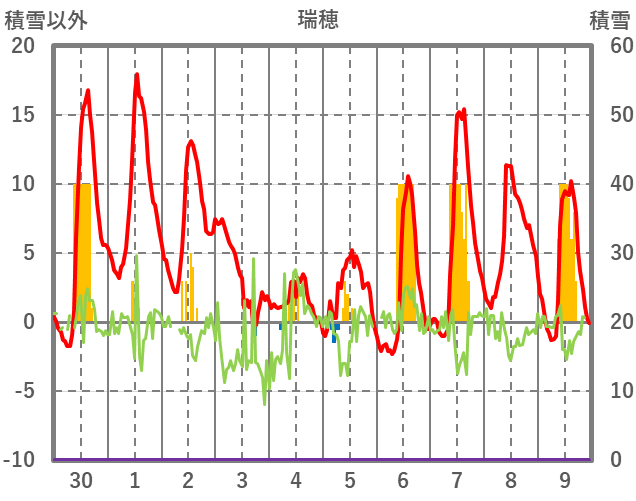 | 日 | 時 | 気温 | 降水 | 風向/風速 | 日照 | 積雪 | 降雪 |