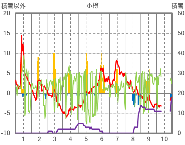| 日 | 時 | 気温 | 降水 | 風向/風速 | 日照 | 積雪 | 降雪 |