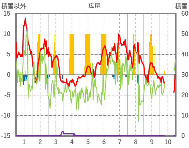 | 日 | 時 | 気温 | 降水 | 風向/風速 | 日照 | 積雪 | 降雪 |