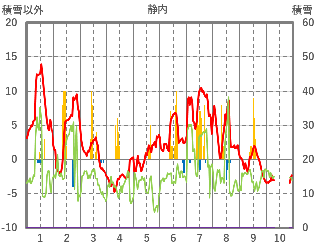 | 日 | 時 | 気温 | 降水 | 風向/風速 | 日照 | 積雪 | 降雪 |