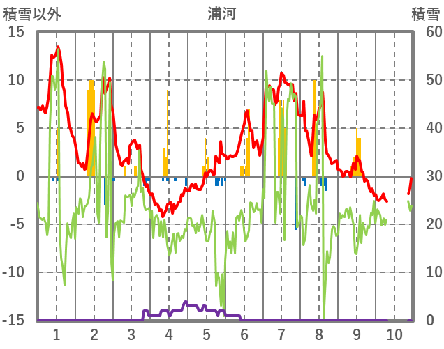 | 日 | 時 | 気温 | 降水 | 風向/風速 | 日照 | 積雪 | 降雪 |