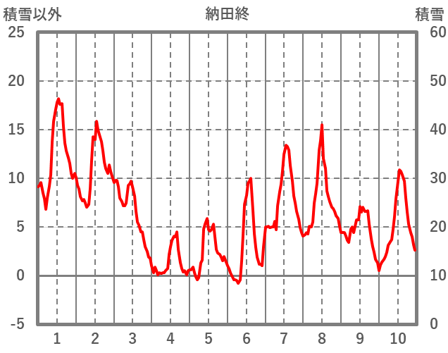 | 日 | 時 | 気温 | 降水 | 風向/風速 | 日照 | 積雪 | 降雪 |
