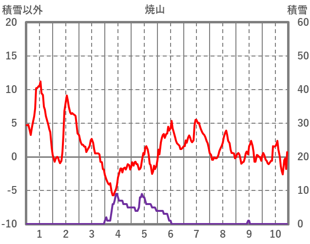 | 日 | 時 | 気温 | 降水 | 風向/風速 | 日照 | 積雪 | 降雪 |
