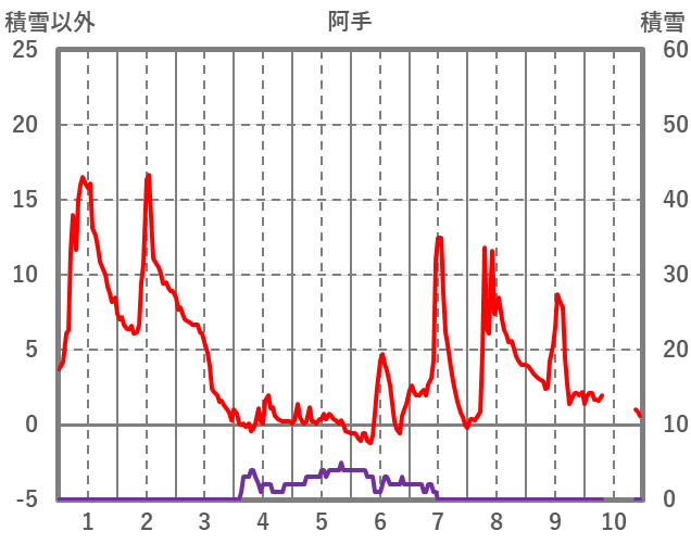 | 日 | 時 | 気温 | 降水 | 風向/風速 | 日照 | 積雪 | 降雪 |