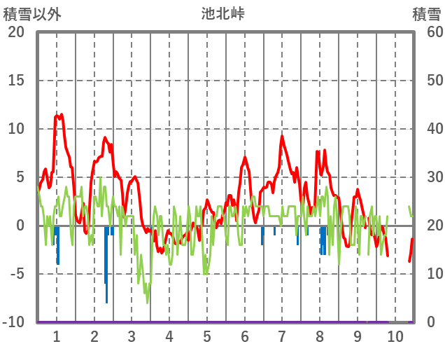 | 日 | 時 | 気温 | 降水 | 風向/風速 | 日照 | 積雪 | 降雪 |