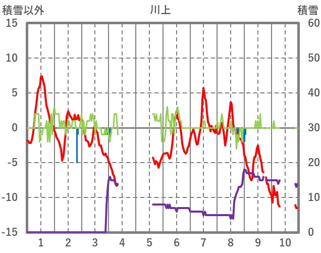 | 日 | 時 | 気温 | 降水 | 風向/風速 | 日照 | 積雪 | 降雪 |
