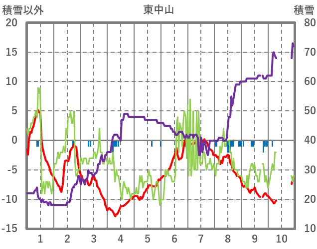 | 日 | 時 | 気温 | 降水 | 風向/風速 | 日照 | 積雪 | 降雪 |