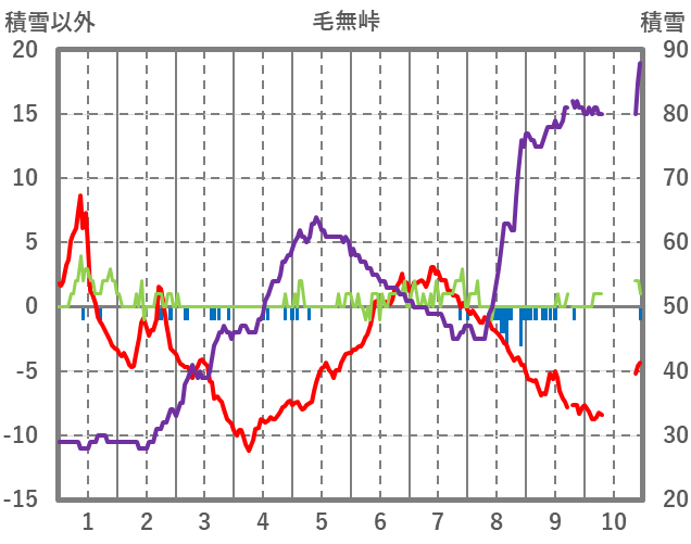 | 日 | 時 | 気温 | 降水 | 風向/風速 | 日照 | 積雪 | 降雪 |