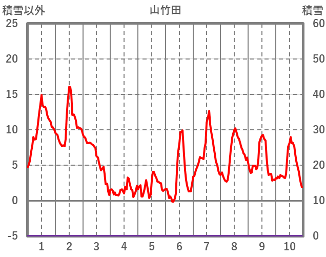 | 日 | 時 | 気温 | 降水 | 風向/風速 | 日照 | 積雪 | 降雪 |