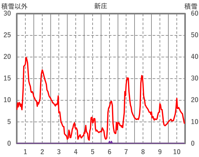 | 日 | 時 | 気温 | 降水 | 風向/風速 | 日照 | 積雪 | 降雪 |