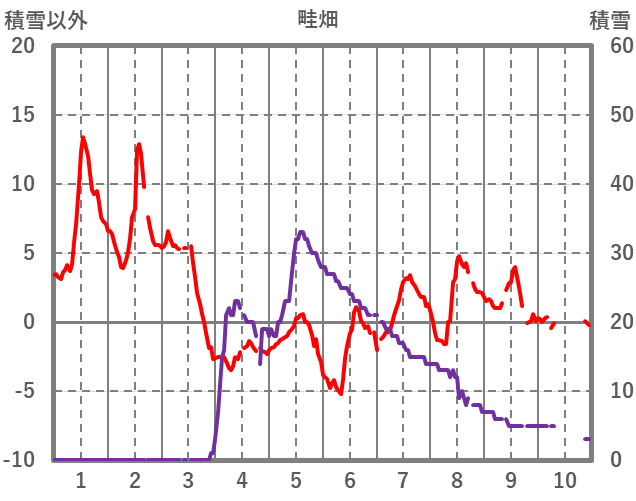 | 日 | 時 | 気温 | 降水 | 風向/風速 | 日照 | 積雪 | 降雪 |