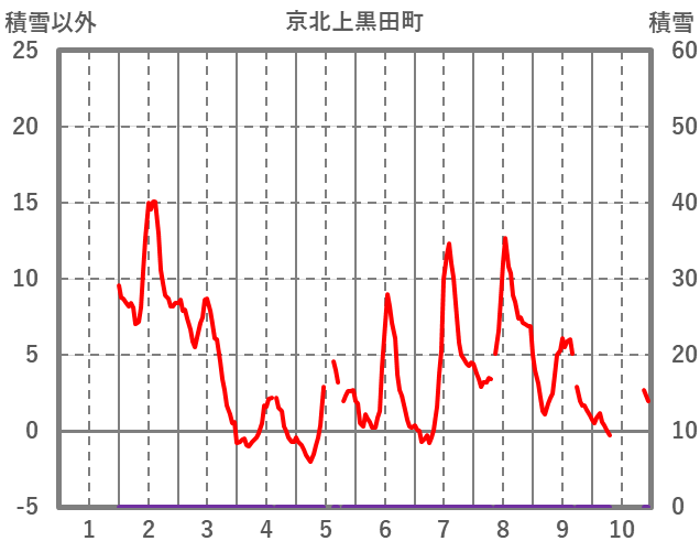| 日 | 時 | 気温 | 降水 | 風向/風速 | 日照 | 積雪 | 降雪 |