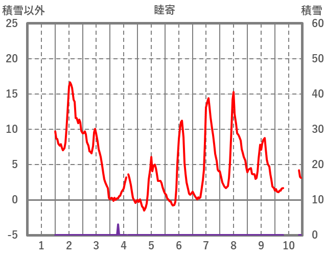 | 日 | 時 | 気温 | 降水 | 風向/風速 | 日照 | 積雪 | 降雪 |