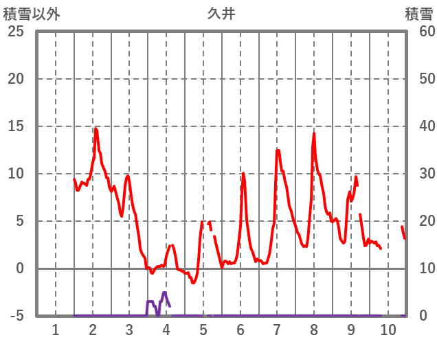 | 日 | 時 | 気温 | 降水 | 風向/風速 | 日照 | 積雪 | 降雪 |