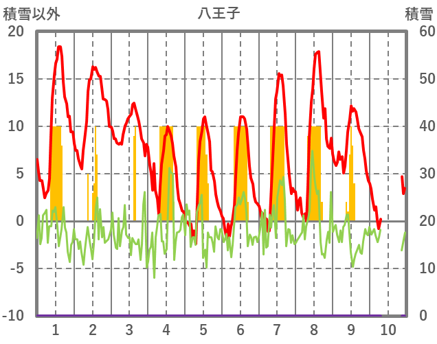 | 日 | 時 | 気温 | 降水 | 風向/風速 | 日照 | 積雪 | 降雪 |