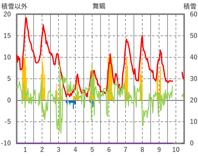 | 日 | 時 | 気温 | 降水 | 風向/風速 | 日照 | 積雪 | 降雪 |