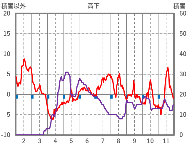 | 日 | 時 | 気温 | 降水 | 風向/風速 | 日照 | 積雪 | 降雪 |