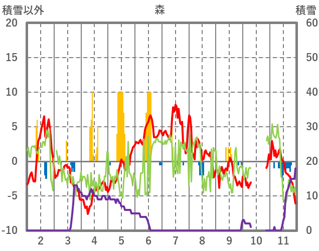 | 日 | 時 | 気温 | 降水 | 風向/風速 | 日照 | 積雪 | 降雪 |