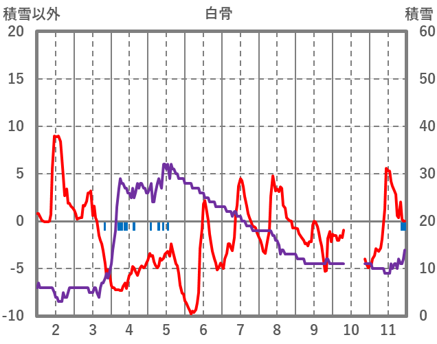 | 日 | 時 | 気温 | 降水 | 風向/風速 | 日照 | 積雪 | 降雪 |