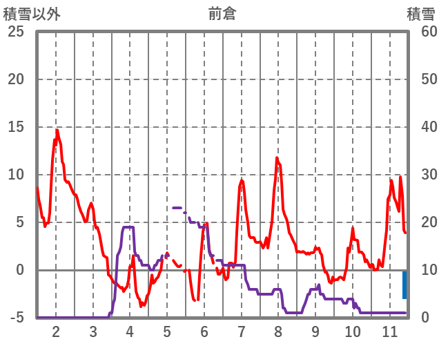 | 日 | 時 | 気温 | 降水 | 風向/風速 | 日照 | 積雪 | 降雪 |