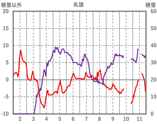 | 日 | 時 | 気温 | 降水 | 風向/風速 | 日照 | 積雪 | 降雪 |