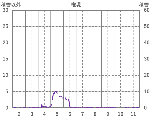 | 日 | 時 | 気温 | 降水 | 風向/風速 | 日照 | 積雪 | 降雪 |