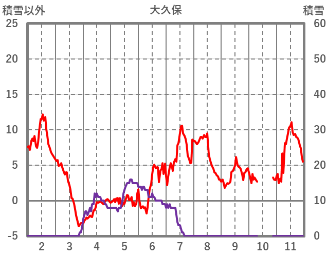 | 日 | 時 | 気温 | 降水 | 風向/風速 | 日照 | 積雪 | 降雪 |