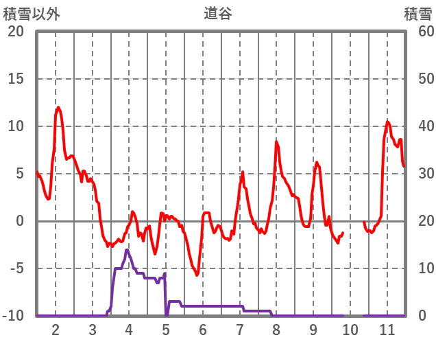 | 日 | 時 | 気温 | 降水 | 風向/風速 | 日照 | 積雪 | 降雪 |