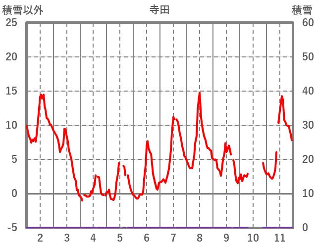 | 日 | 時 | 気温 | 降水 | 風向/風速 | 日照 | 積雪 | 降雪 |
