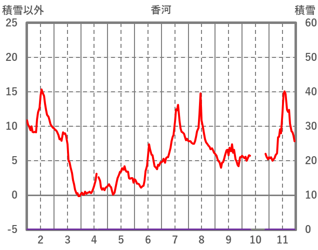 | 日 | 時 | 気温 | 降水 | 風向/風速 | 日照 | 積雪 | 降雪 |