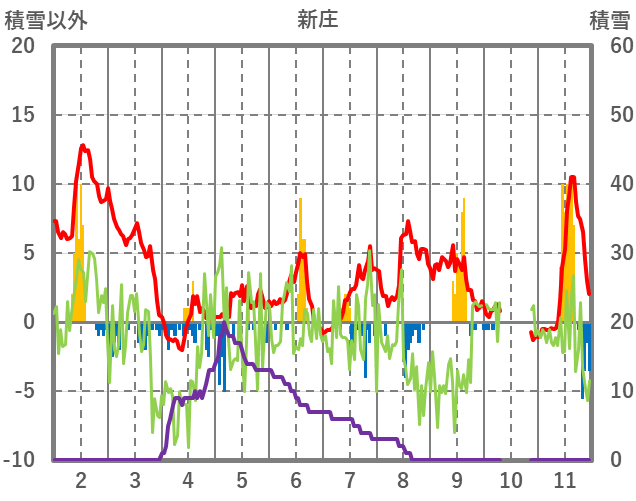 | 日 | 時 | 気温 | 降水 | 風向/風速 | 日照 | 積雪 | 降雪 |