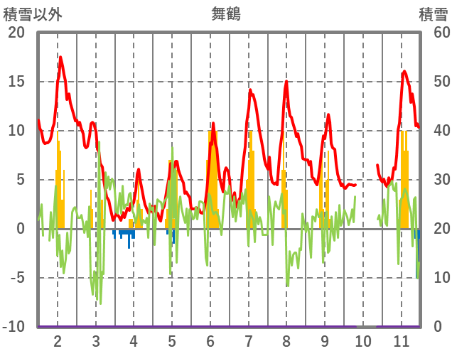 | 日 | 時 | 気温 | 降水 | 風向/風速 | 日照 | 積雪 | 降雪 |