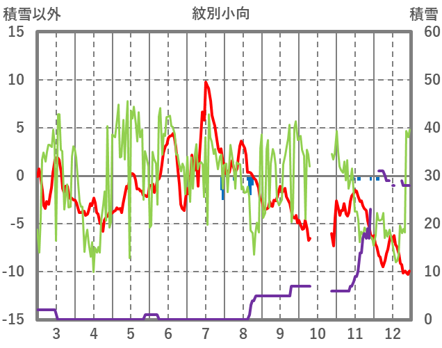| 日 | 時 | 気温 | 降水 | 風向/風速 | 日照 | 積雪 | 降雪 |