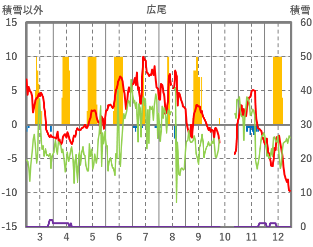 | 日 | 時 | 気温 | 降水 | 風向/風速 | 日照 | 積雪 | 降雪 |
