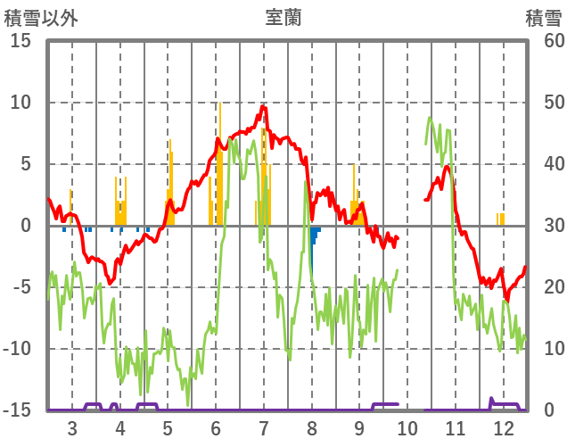 | 日 | 時 | 気温 | 降水 | 風向/風速 | 日照 | 積雪 | 降雪 |