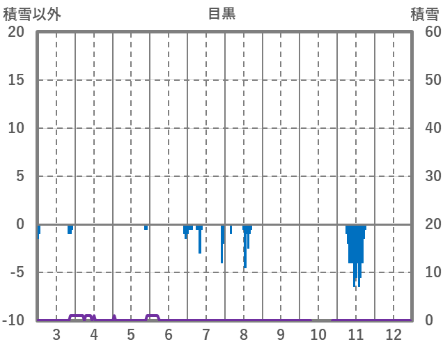 | 日 | 時 | 気温 | 降水 | 風向/風速 | 日照 | 積雪 | 降雪 |