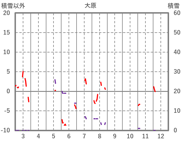 | 日 | 時 | 気温 | 降水 | 風向/風速 | 日照 | 積雪 | 降雪 |