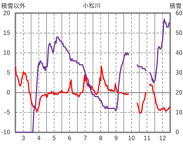 | 日 | 時 | 気温 | 降水 | 風向/風速 | 日照 | 積雪 | 降雪 |